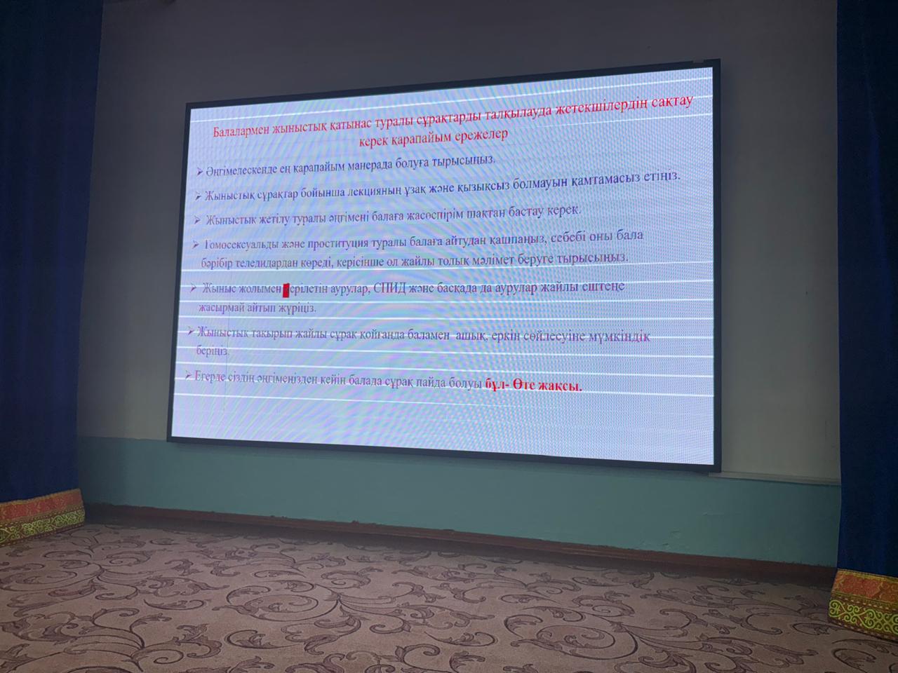 Осы мақсатта мектептің қыздарымен "ашық тақырыпта" сөз қозғалып, қыздардың өздерін ұстауы, жүріс-тұрысы, киім киінуі, қызға тән қасиеттерді бойларына сіңіріп, келешекте болашақ ана атанатындарын, дені сау, ибалы, инабатты қыздар тәрбиелеу.